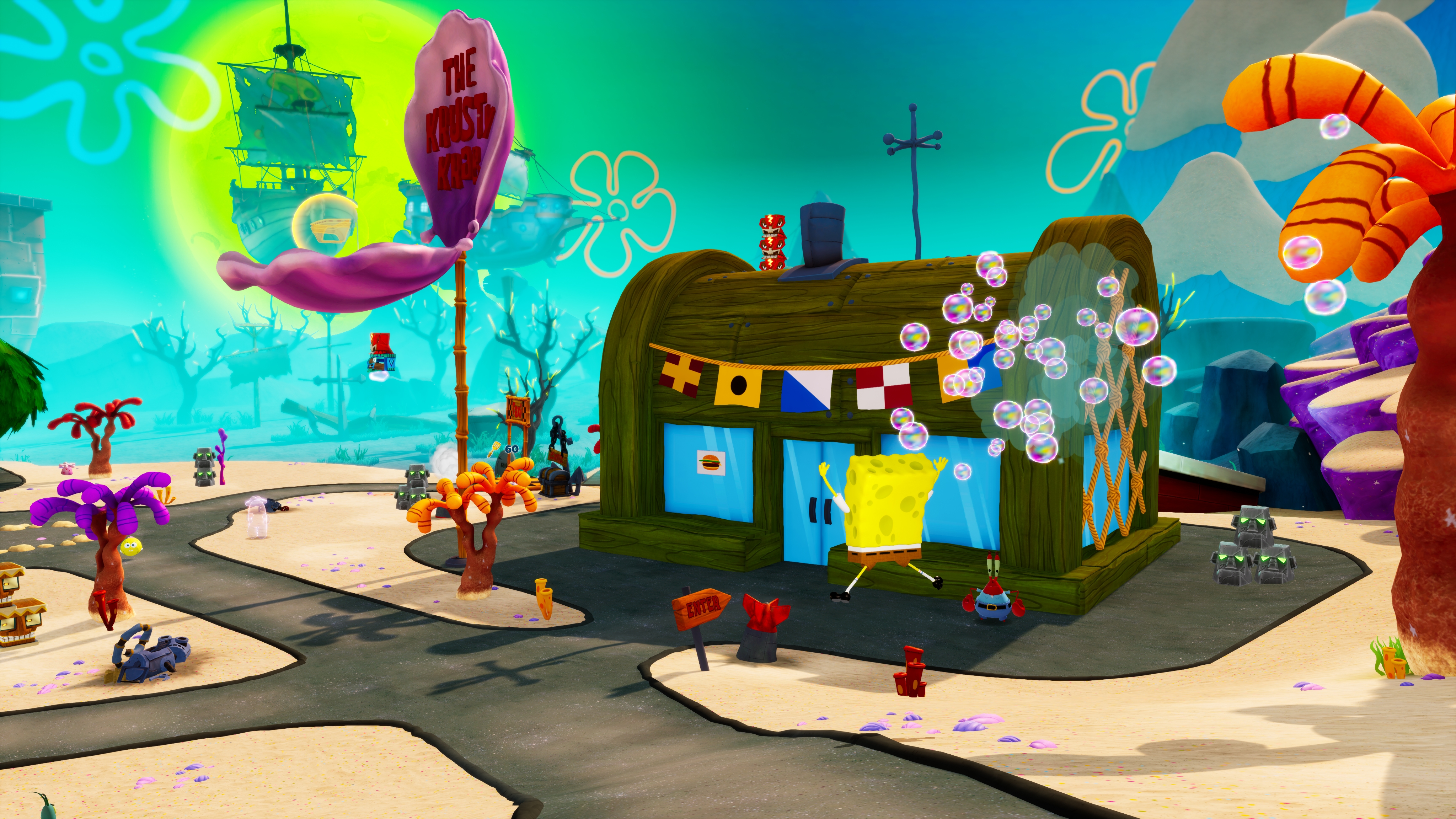 The cult classic is back, faithfully remade in spongetastic splendor! Play as SpongeBob, Patrick and Sandy and show the evil Plankton that crime pays even less than Mr. Krabs. Want to save Bikini Bottom from lots of rampant robots with your might bubbles? Of cours you do! Want to underpants bungee jump? Why wouldn´t you! Want to join forces in a brand new multiplayer mode? The battle is on!